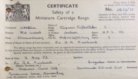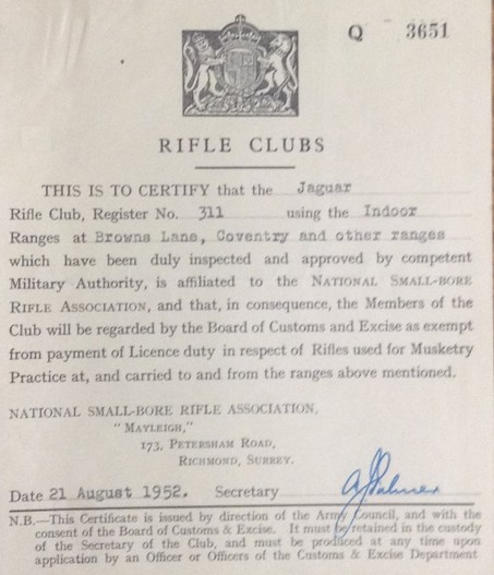 The rifle club has its roots with the men and women of the reserved occupation who formed part of the Home Guard, like many factories within the city of Coventry, Jaguar Cars had built a 25 yard pratice range on site so as the workers who were part of the Home Guard could train.